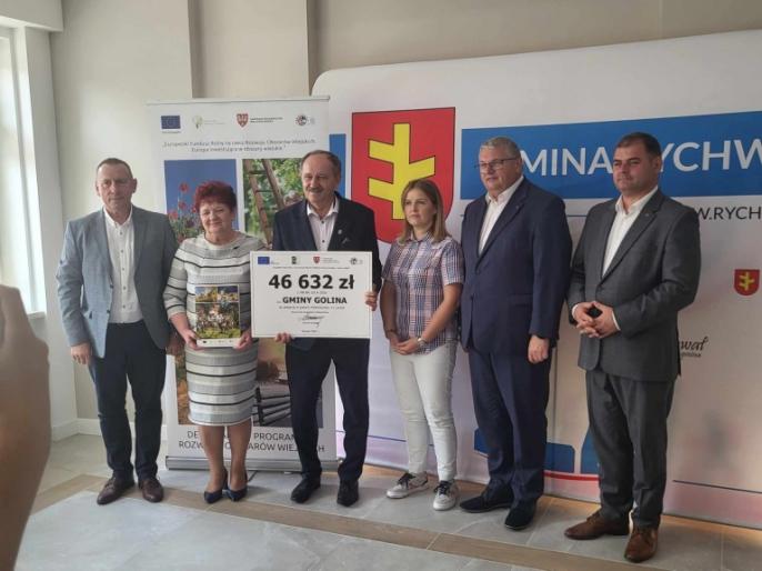 Wicemarszałek Krzysztof Grabowski przekazał na ręce Burmistrza Goliny okolicznościowy czek na kwotę 42 632,00 zł, stanowiącą dofinansowanie operacji.