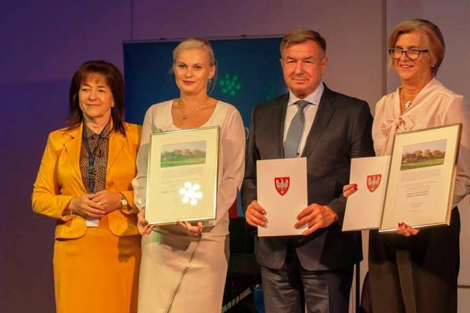 Nagrodę z rąk przedstawicieli samorządu województwa wielkopolskiego odebrali: Magdalena Siupa – dyrektor biblioteki i Marek Wesołowski – burmistrz gminy i miasta Kleczew