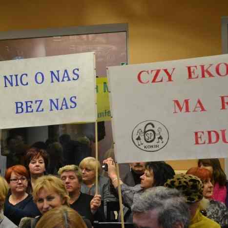 – Nie podjęliśmy jeszcze żadnych decyzji. Powołaliśmy cztery zespoły, które wypracowują wnioski i propozycje. Zapewniam: nic o was bez was, każda decyzja będzie wcześniej z państwem konsultowana – uspokajał pedagogów prezydent Konina Józef Nowicki, dodając że zmiany są konieczne z uwagi na druzgocącą tendencję demograficzna miasta – z każdym rokiem z naszych szkół ubywają setki uczniów, kolejne problemy to stale zmniejszająca się subwencja rządowa oraz trudna sytuacja finansowa samorządy.