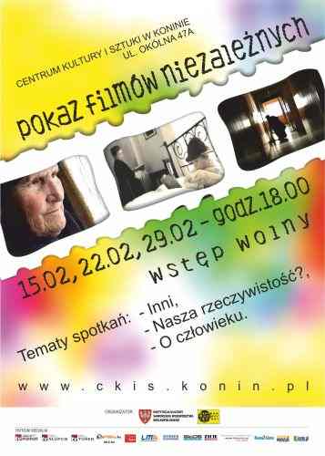 Centrum Kultury i Sztuki w Koninie (CKiS) zaprasza na cykl pokazów filmów niezależnych prezentowanych na krajowych i zagranicznych festiwalach. Filmy prezentowane będą w blokach tematycznych – „Inni” (o tolerancji i trudach odmienności), „Nasza rzeczywistość?” (jak filmowcy widzą naszą rzeczywistość, jak ją kreują i czy czasami – wbrew naszym oczekiwaniom – nie „puszczają do nas oka?” i „O Człowieku” (Człowiek – temat rzeka).