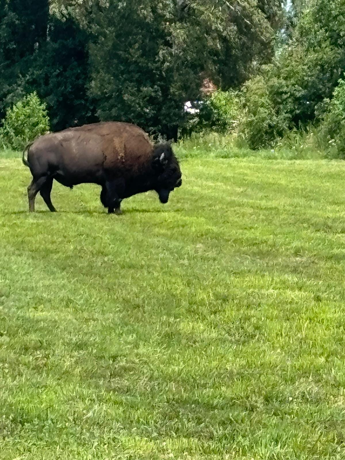 Zwierzę odnaleziono około 20 km od swojej zagrody, w miejscowości Grochowy. Zauważył je właściciel posesji, po której bizon swobodnie spacerował.