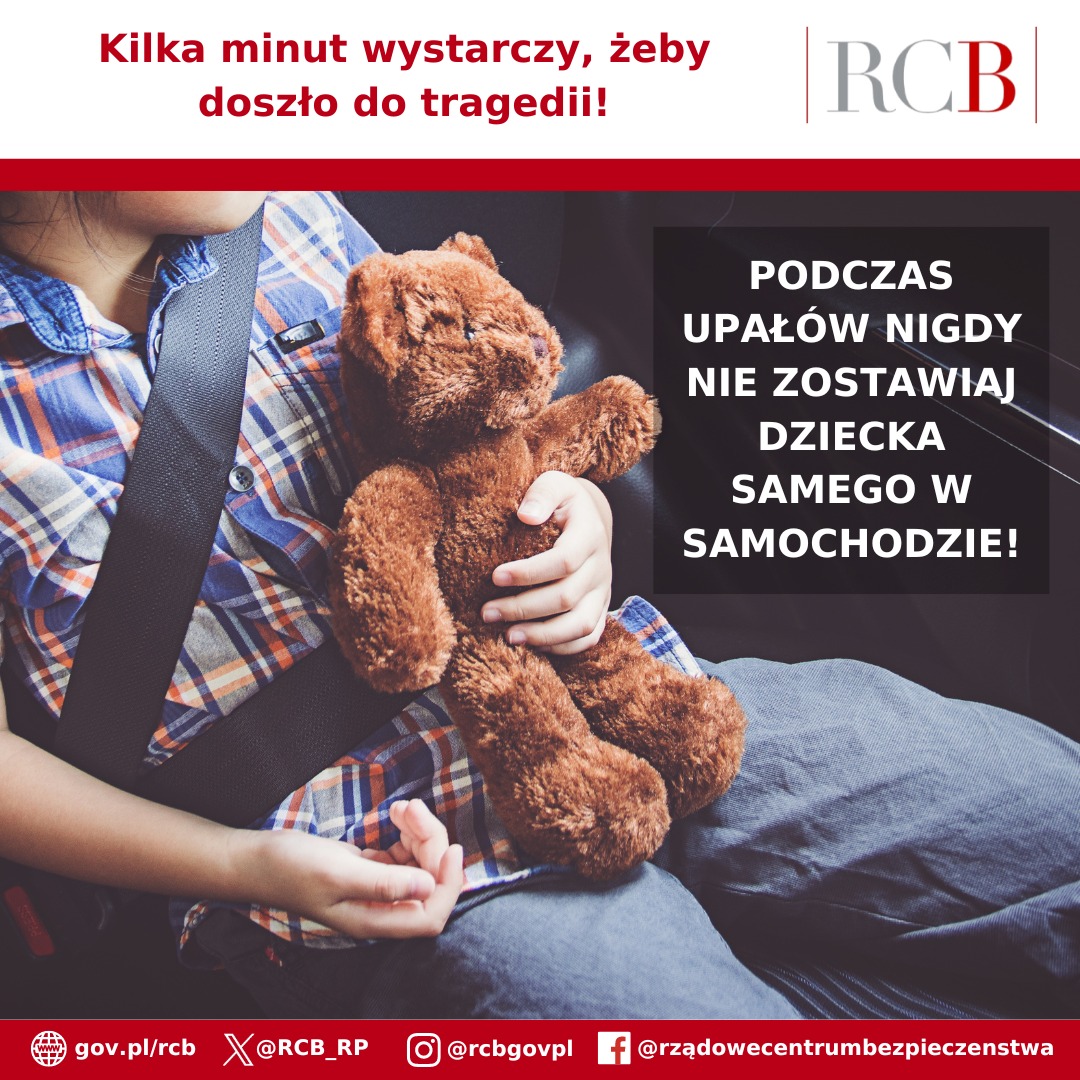 Podczas upałów NIGDY, NAWET NA CHWILĘ, nie zostawiaj dziecka samego w samochodzie!