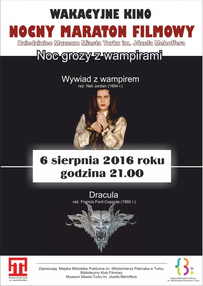 Wydarzenie odbędzie się pod hasłem „Noc grozy z wampirami”. Podczas seansu będzie można obejrzeć dwa filmy: „Wywiad z wampirem”- reż. Neil Jordana (1994 r.) oraz „Dracula”- reż. Francis Ford Coppola z (1992 r.).