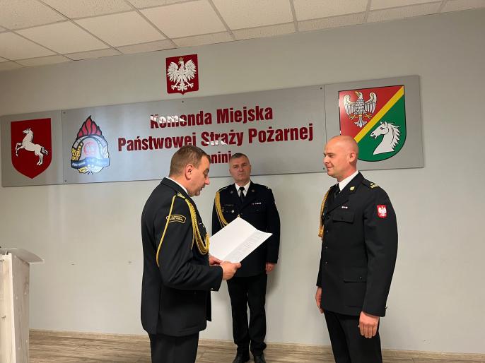 Decyzje o mianowaniu st. bryg. Maciej Pilarski wręczył wraz z zastępcą st. kpt. Michałem Karczewskim w obecności zastępcy dowódcy Jednostki Ratowniczo-Gaśniczej Nr 1 w Koninie kpt. Bartłomiejem Patrzykątem oraz zmiany służbowej.