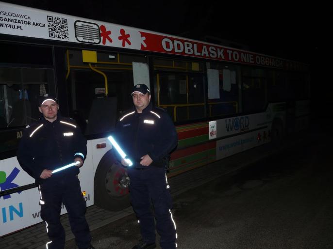 Stąd też pomysł na promowanie tej idei. Dyrektor WORD Piotr Korytkowski wraz z Pawłem Durkiewiczem, policjantami z Wydziału Prewencji i dzielnicowymi postanowili podróżować wspólnie z pasażerami dwóch linii – do Goliny i Kazimierza Biskupiego. Wybrano właśnie te trasy, ponieważ ich podróżni z przystanku muszą dojść do domów właśnie w warunkach, kiedy używanie odblasków jest konieczne.