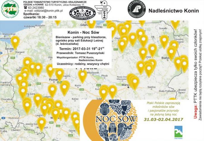 31 marca o godzinie 19 na parkingu przed klasztorem w Bieniszewie zbiorą się chętni na spacer, podczas którego będzie można nasłuchiwać wiosennych odgłosów sów. Przewodnikiem będzie Tomasz Puszczyński. Organizatorami wieczoru jest PTTK oddział Konin wraz z konińskim Nadleśnictwem.