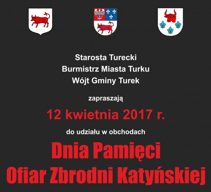 Burmistrz Miasta Turek, Starosta Turecki Wójt Gminy Turek zapraszają do udziału w Dniu Pamięci Ofiar Zbrodni Katyńskiej, 12 kwietnia 2017 r.