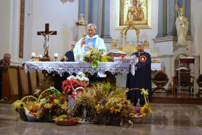 Podczas uroczystej Mszy Świętej, którą celebrował proboszcz Ryszard Kopczyński dziękowano rolnikom za całoroczny trud i pracę, której owocami były wspaniałe dary: wieniec, chleb, miód, owoce i kwiaty, złożone przez delegacje sołectw należących do parafii