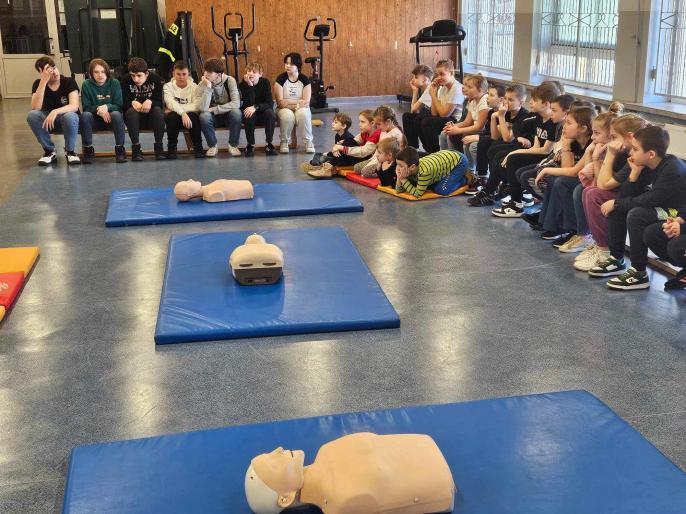 Podczas pierwszego spotkania z udziałem trzech klas omówiono podstawowe zasady pierwszej pomocy. Przez dwie godziny uczniowie praktykowali m.in. bezpieczną pozycję boczną, masaż serca, poprawne użycie defibrylatora oraz udzielanie pomocy osobom z niedrożnymi górnymi drogami oddechowymi, zarówno u dorosłych, jak i dzieci.