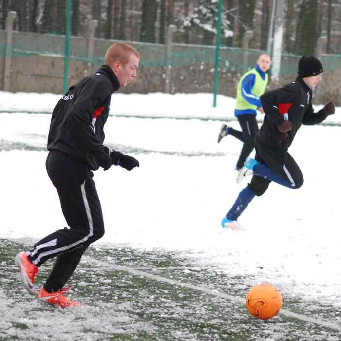 W arktycznych warunkach rozegrali jedne z ostatnich zimowych sparingów piłkarze z naszego regionu.