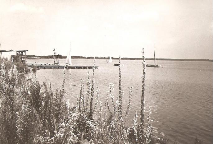 Potem trzeba było jeździć nad jeziora. Pierwsza plaża to był Pątnów. Skromny pomost, wieża do skoków, ciężkie, żelazne rowery wodne, barak na kajaki. Ot i cały luksus. Ale pływać można było do woli.