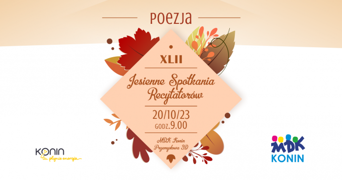Już po raz czterdziesty drugi w najbliższy piątek 20 października zapraszamy konińskich miłośników recytacji do udziału w Jesiennych Spotkań Recytatorów.