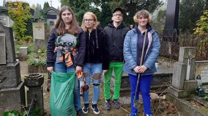 Słuchacze Zespołu Szkół Kształcenia Ustawicznego w Koninie posprzątali zapomniane groby w ramach akcji MEiN ,,Szkoła Pamięta”.