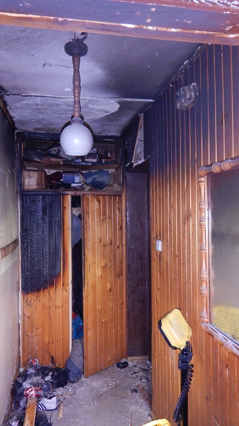 Po dojeździe na miejsce zdarzenia pierwszego zastępu przeprowadzono rozpoznanie w wyniku którego ustalono, że pali w przedpokoju mieszkania na parterze. Mieszkańcy lokalu, w którym powstał pożar opuścili budynek przed przybyciem straży pożarnej, wśród nich jest jedna osoba nieprzytomna. Działania straży pożarnej polegały na zabezpieczeniu terenu działań, podaniu jednego prądu gaśniczego wody na palący się przedpokój oraz ewakuacji pozostałych mieszkańców budynku i udzieleniu kwalifikowanej pierwszej pomocy osobie poszkodowanej, którą następnie przekazano przybyłemu na miejsce zderzenia zespołowi ratownictwa medycznego. Pożar został ugaszony, a ewakuowani mieszkańcy mogli wrócić do swoich mieszkań. Pożar przez 2 godziny gasiło 26 strażaków. Dochodzenie w sprawie przyczyny pożaru prowadzi policja.