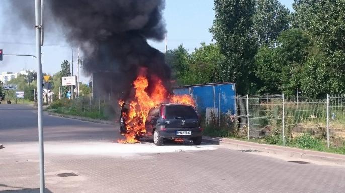Pożar samochodu na stacji benzynowej