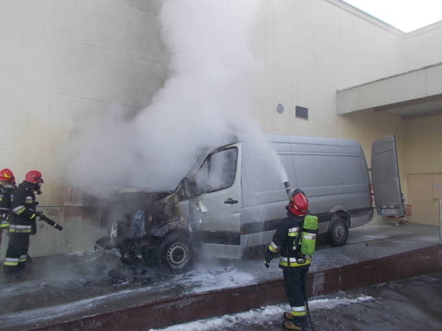 Po przybyciu na miejsce stwierdzono, że pożarem objęty był samochód dostawczy zaparkowany przy rampie rozładunkowej przy Centrum Handlowym.