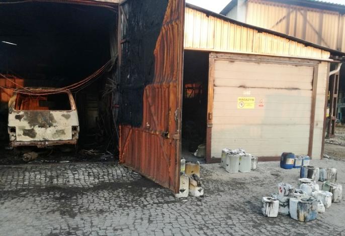 Na miejsce pożaru zadysponowane zostały zastępy z Jednostki Ratowniczo-Gaśniczej PSP w Kole oraz jednostki: OSP z terenu powiatu kolskiego. Po dojeździe na miejsce zdarzenia pierwszych zastępów przeprowadzono rozpoznanie, w wyniku którego ustalono, że pożarem objęty jest cały budynek jednej z hal oraz pożar rozprzestrzenia się na przyległą wiatę garażową, panuje silne zadymienie i wysoka temperatura, palą się elementy wyposażenia wnętrza, sprzęt warsztatowy pojazdy garażowane w hali i wiacie. Działania straży pożarnej polegały na zabezpieczeniu terenu objętego działaniem ratowniczym, podaniu czterech prądów gaśniczych piany i wody w miejsce pożaru oraz prądu gaśniczego wody w obronie na nieobjętą pożarem część wiaty wraz z wyposażeniem. W wydzielonym pomieszczeniu hali znajdował się magazynek ze środkami chemicznymi wykorzystywanymi przez firmę w procesach dezynfekcji i deratyzacji. Pożar zgromadzonych chemikaliów stwarzał największe zagrożenie w związku z czym ewakuowano 6 mieszkańców z pobliskich trzech posesji oraz do gaszenia wykorzystano proszek gaśniczy. Działania kolskich strażaków wspomagały specjalistyczne grupy ratownictwa chemicznego z Poznania i Konina, siły i środki OSP zadysponowane z powiatu konińskiego i tureckiego, zastępy ratowniczo–gaśnicze z JRG Leszno, JRG Krotoszyn, JRG Konin, JRG Ostrów Wielkopolski, JRG Turek, JRG Poznań oraz grupa operacyjna Komendy Wojewódzkiej PSP w Poznaniu. Po ugaszeniu pożaru nadpalone pojemniki z chemikaliami zostały zabezpieczone i złożone w wyznaczonej strefie. W wyniku pożaru częściowemu spaleniu uległa hala warsztatowo-garażowa oraz przyległa wiata i znajdujące się w nich pojazdy, urządzenia, elementy wyposażenia wnętrza oraz sprzęt warsztatowy. Dochodzenie w sprawie przyczyny pożaru prowadzi Policja. Działania ratowniczo-gaśnicze przez ponad 14 godzin prowadziło łącznie 35 zastępów straży pożarnej.