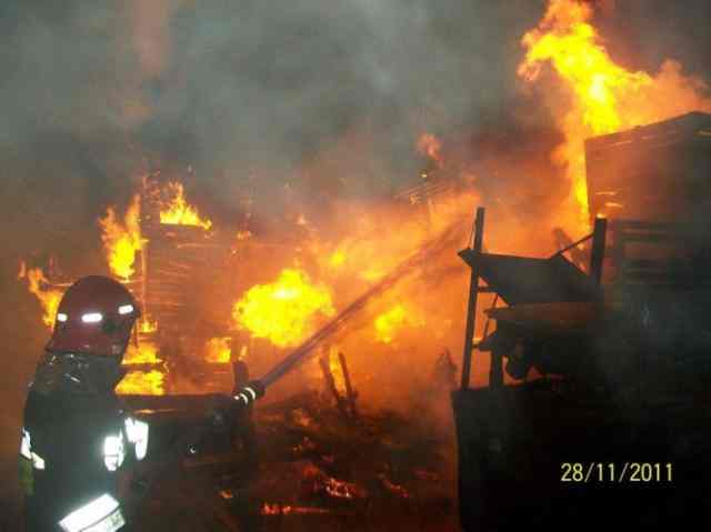 Wczoraj wieczorem słupeccy strażacy wezwani zostali do pożarze w miejscowości Kowalewo Parcele, gm. Słupca. Osoba alarmująca o pożarze poinformowała, że na terenie zakładu produkcyjnego palą się drewniane skrzynie a ogień bardzo szybko rozprzestrzenia się na pobliski magazyn. Do akcji wysłano strażaków z PSP w Słupcy i OSP z Kamienia, Woli Koszuckiej, Wilcznej i Lądku.W chwili ich przybycia na miejsce ogniem objęte było składowisko drewnianych skrzyń znajdujących się przy budynku magazynowym. Płomienie sięgały dachu budynku. Skuteczne podjęcie działań gaśniczych uniemożliwiło przedostanie się płomieni na sąsiednią halę produkcyjną. Po zlikwidowaniu zagrożenia nadpalone skrzynie przetransportowano wózkiem widłowym w bezpieczne miejsce. Przy użyciu podnośnika hydraulicznego zdemontowano zwisające rynny i część opierzenia w celu sprawdzenia stanu połaci dachu. Ogień strawił 50 skrzyń drewnianych oraz zniszczył fragmenty ściany i dachu magazynu. Walka z żywiołem trwała prawie 3 godziny.