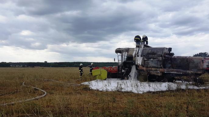 Pożar objął powierzchnię 4 ha oraz w całości palił się kombajn zbożowy, który wykonywał w tym czasie prace na polu. Operator kombajnu opuścił maszynę i nic mu się nie stało. Podjął on samodzielną próbę ugaszenia maszyny, jednak nieskuteczną. Straż po przybyciu na miejsce podała prądy wody na palące się zboże. Całkowitemu spaleniu uległ kombajn oraz 4 ha zboża. Działania gaśnicze trwały prawie trzy godziny. Na miejscu pracowało 12 zastępów straży pożarnej.