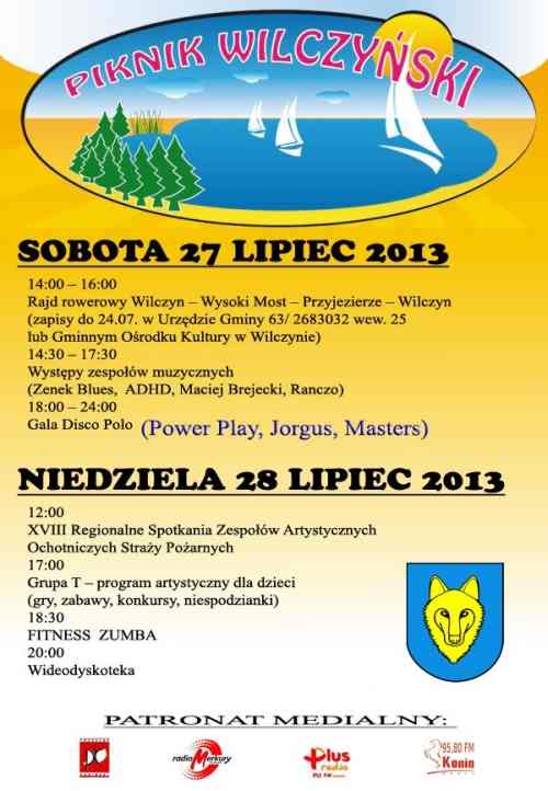 Za nami rajd rowerowy na trasie Wilczyn – Wysoki Most – Przyjezierze – Wilczyn i występy zespołów muzycznych. Przed nami zaplanowane na dziś XVIII Regionalne Spotkania Zespołów Artystycznych OSP, Zumba Fitness oraz program artystyczny dla dzieci i wideodyskoteka. A wszystko nad brzegiem urokliwego jeziora w Wilczynie.
