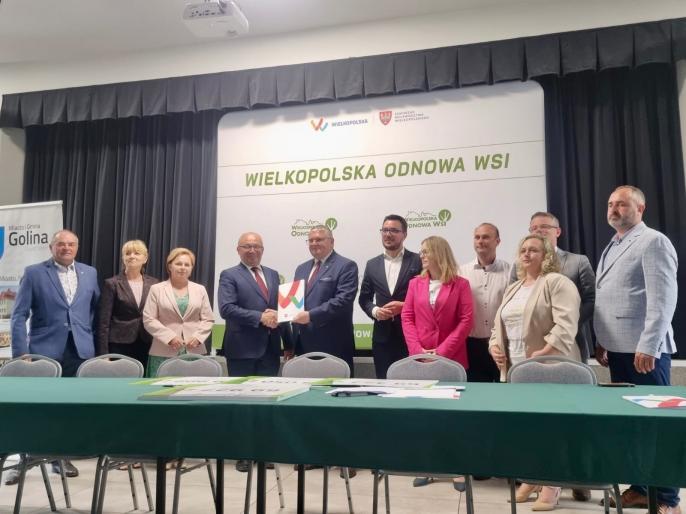 W piątek w Golinie, odbyło się podpisanie umów z Samorządem Województwa Wielkopolskiego, reprezentowanym przez Wicemarszałka Krzysztofa Grabowskiego, na realizację zadań w ramach konkursu „Pięknieje Wielkopolska Wieś”.