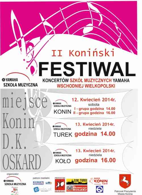 Zarówno w sobotę jak i niedzielę festiwalowe prezentacje rozpoczynać się będą o godz. 14:00. Patronat medialny nad imprezą sprawować będzie m.in. Radio Konin (95,8 FM).