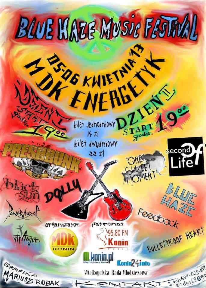 Odbędzie się tam pierwszy Blue Haze Music Festival. Zagrają konińskie kapele: Blue Haze, Stranger, Dolly, Preshrunk, Power Horse, Feedback, Bulletproof Heart, One Sweet Moment. Koncert połączony będzie z akcją charytatywną fundacji „Serca granie”, która będzie zbierać na wózek inwalidzki dla niepełnosprawnej Karoliny – poinformował Bartosz Andrychowski – organizator festiwalu.