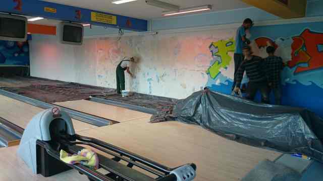 Na zdj. Remont kręgielni w Hali Rondo