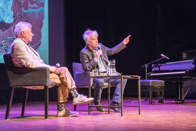Jan Kanty Pawluśkiewicz opowiadał o swojej twórczości, ale jak przystało na filmowe spotkanie, przywiózł dwa filmy: dokumentujący specjalny pokaz w technice 3D, który odbył się na murach krakowskiego Teatru Starego i… etiudę. Znany kompozytor, współtwórca sukcesów Marka Grechuty i Anawy, zasiadł też za fortepianem i namówił publiczność do wspólnego skomponowania „donatorium”.