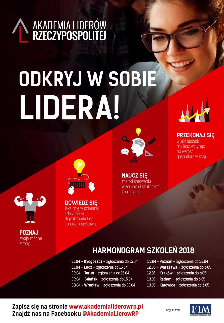 Zgłoszenia do Akademii Liderów Rzeczpospolitej przyjmowane są poprzez formularz internetowy dostępny na stronie www.akademialiderowrp.pl do 22 kwietnia br. Szkolenie odbędzie się 29 kwietnia w Poznaniu.