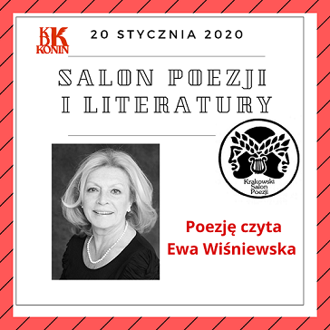 Salon Poezji i Literatury z udziałem Ewy Wiśniewskiej odbędzie się w Konińskim Domu Kultury 20 stycznia o godz. 18.00. Bilety do nabycia w kasie KDK oraz online w zakładce kup bilet na stronie internetowej KDK.