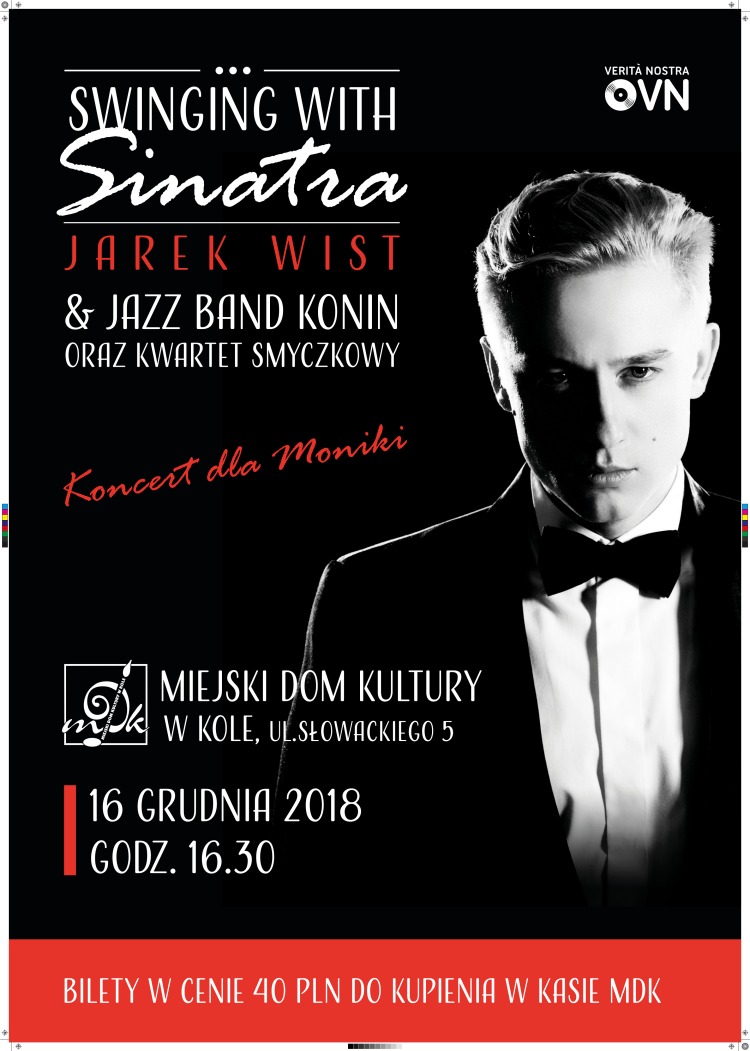 Na pewno usatysfakcjonuje ono miłośników swingu, fanów Franka Sinatry i wszystkich tych, którzy poszukują nie tylko doskonałego dźwięku, ale też pełnego zaangażowania artystów, pozwalających rozpoznać głębię muzyki. Jarkowi Wistowi towarzyszyć będzie Jazz Band z Konina i Kwartet Smyczkowy. Koncert dedykowany jest mieszkającej w Kole Monice – mamie trójki dzieci, którą dotknęła poważna choroba. Zapraszamy.