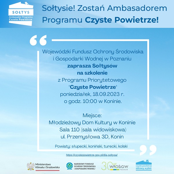 Spotkania dla Sołtysów w ramach projektu „Sołtys Ambasadorem Czystego Powietrza”
