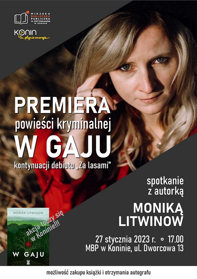 Miejska Biblioteka Publiczna im. Zofii Urbanowskiej w Koninie zaprasza na spotkanie autorskie z Moniką Litwinow.