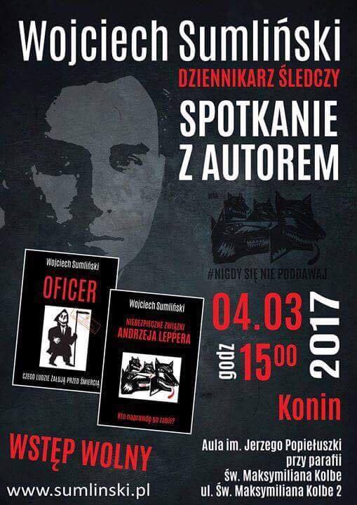 Wojciech Sumliński przyjedzie do Konina, 4 marca 2017 będzie można spotkać dziennikarza w Auli im. Jerzego Popiełuszki przy parafii św. Maksymiliana Kolbe godz. 15.00.