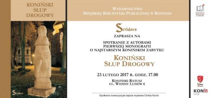 Wydawnictwo Miejskiej Biblioteki Publicznej w Koninie SETIDAVA zaprasza na spotkanie z autorami pierwszej monografii o najstarszym konińskim zabytku KONIŃSKI SŁUP DROGOWY.