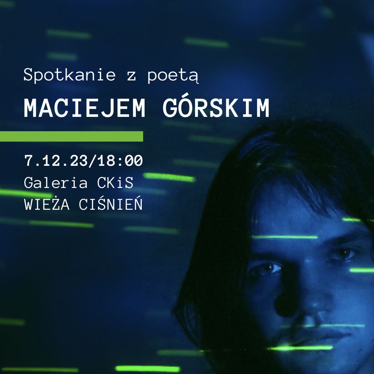 Maciej Górski pisze wiersze od 8 lat. W ubiegłym roku jego teksty znalazły się w zbiorze zatytułowanym „Pisanie jest trendy" wydanym jako zwieńczenie warsztatów, które odbyły się w ramach Konińskiej Jesieni Poetyckiej. Dwa lata temu młody poeta zagrał w spektaklu „Kwiaty polskie, czyli powiew łódzkiej przedwojennej awangardy w Koninie". Jak sam twierdzi: „dzięki sztuce mogę mówić rzeczy, których nie jestem w stanie wyrazić wprost". Wstęp na wydarzenie jest wolny. Do zobaczenia!