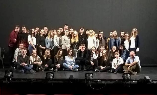 Wszystko za sprawą Mateusza Webera, absolwenta liceum a obecnie aktora . Obejrzeli musical „Cabaret” z Mateuszem właśnie w roli głównej. Niesamowita sceneria, gra świateł, śpiew, muzyka na żywo i taniec – to robi wrażenie! Udział w tym spektaklu (o rodzącym się w przedwojennych Niemczech faszyzmie) był naprawdę wielkim przeżyciem dla uczniów klas 1b, 2b, 2e i 3b. Ale najciekawsze czekało ich po przedstawieniu. Spotkali się na pustej już widowni z odtwórcami dwóch głównych ról – Mateuszem i Krzysztofem Szczepaniakiem (Mistrz Ceremonii). To duże przeżycie móc rozmawiać o dopiero co obejrzanej sztuce z aktorami, którzy przed chwilą zeszli ze sceny. Od początku panowała swobodna i przyjacielska atmosfera. Uczniowie pytali o różnorodne sprawy związane z byciem aktorem i występowaniem na scenie. Mateusz i Krzysztof odpowiadali nie szczędząc żartów, zabawnych anegdot i ciekawostek. Po znajomości nawet dowiedzieli się, jaka to wpadka zdarzyła się podczas „naszego” spektaklu, a której nikt z widzów nawet nie zauważył! Spotkanie zakończyło się wspólnym zdjęciem na głównej scenie. Mateusz Weber jak i Krzysztof Szczepaniak złożyli obietnicę warsztatów w przyszłej klasie artystycznej