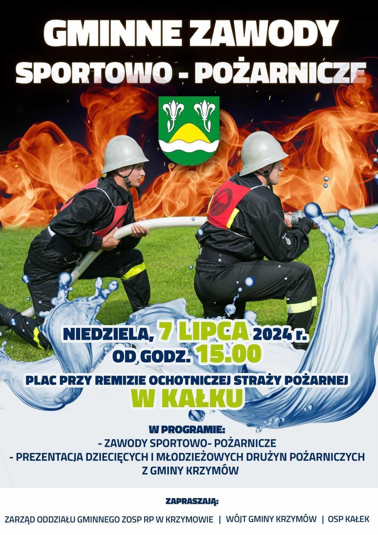 Serdeczne zaproszenie na zawody składają Zarząd Oddziału Gminnego Związku Ochotniczych Straży Pożarnych Rzeczypospolitej Polskiej w Krzymowie, Wójt Gminy Krzymów, Danuta Mazur oraz Ochotnicza Straż Pożarna w Kałku.
