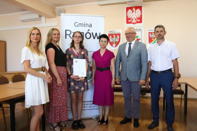 Izabela Krygier została uhonorowana stypendium Wójta Gminy Rzgów za uzyskanie bardzo wysokiej średniej ocen (5,64) w roku szkolnym 2023/2024 oraz za zdobycie tytułu Laureata Wojewódzkiego Konkursu Języka Polskiego.