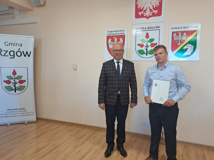 Wójt Gminy Rzgów przyznał w dniu 18 lipca 2023 r. stypendium za wyniki w nauce i osiągnięcia sportowe uczniowi Mateuszowi Mikołajczykowi.