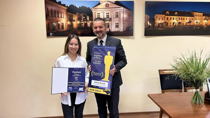 Mamy wielką radość podzielić się z Wami wspaniałą wiadomością! Uczennica Zespołu Szkół Budownictwa i Kształcenia Zawodowego w Koninie, Nikola Roszak z klasy 4 Technikum Budownictwa, została uhonorowana wyróżnieniem w Konkursie „Legitna Praca w Oczach Kamery”, zorganizowanym przez Główny Inspektorat Pracy w Warszawie.