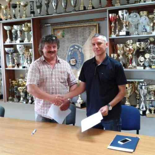 (na zdjęciu po prawej) – były szkoleniowiec Warty Krzymów,