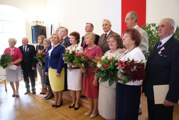 Na okoliczność wzruszającego spotkania, odczytany został list prezydenta: Z okazji obchodzonego przez Państwa wspaniałego jubileuszu – zawarcia związku małżeńskiego – mam wielką przyjemność uhonorować Państwa Medalami za Długoletnie Pożycie Małżeńskie. Wśród polskich odznaczeń państwowych medal ten zajmuje miejsce szczególne, symbolizuje bowiem szacunek, jakim Rzeczpospolita darzy trwałą więź małżeńską i wagę, jaką przywiązuje do pomyślności rodziny. Nikt lepiej od Was Czcigodni Jubilaci nie wie, ile potrzeba codziennego troskliwego pielęgnowania małżeńskiej relacji, wzajemnej uwagi, wsparcia, pamięci, odpowiedzialności i wyrozumiałości, aby miłość nigdy nie ustała. Wspólne pokonywanie przeciwności losu i podejmowanie codziennego trudu w imię wartości, do których odwołuje się przysięga małżeńska: miłości, wierności i uczciwości, zasługuje na wdzięczność i uznanie ze strony państwa. Trwałość rodziny powszechnie uważana jest za podstawę ludzkiego szczęścia. Zapewnia poczucie stabilizacji i bezpieczeństwa tym, którzy ją tworzą, a jednocześnie stanowi bezcenny wkład w powodzenie całego narodu, który sam jest wielką rodzina rodzin. Dlatego też rodzina cieszy się konstytucyjną ochroną i niezmienną życzliwością władz. Przeżyte razem lata stanowią świadectwo, iż ten piękny ideał urzeczywistnił się w Państwa życiu. Państwa przykład wierności danemu słowu jest z pewnością powodem do dumy i radości dla najbliższych i przyjaciół, a dla wielu dowodem na to, że warto do tego ideału dążyć. Proszę więc przyjąć wyrazy uznania, najserdeczniejsze gratulacje i z serca płynące życzenia kolejnych lat wspólnego życia w zdrowiu i radości.