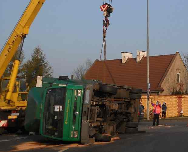 Ponad godzinę trwało podnoszenie TIR-a na rondzie Miast PartnerskichWczoraj w godzinach rannych jeden pas ruchu na rondzie Miast Partnerskich