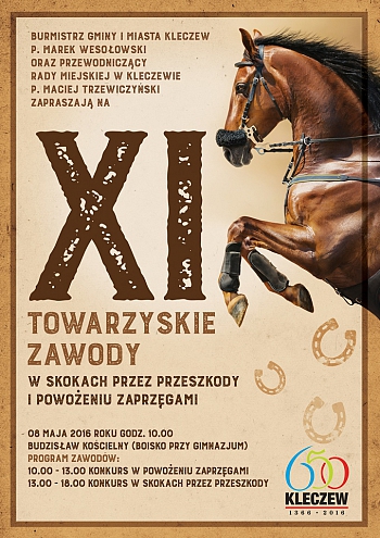 XI Towarzyskie zawody w skokach przez przeszkody i powożeniu zaprzęgami odbędą się 8 maja 2016 r. w Budzisławiu Kościelnym (gm. Kleczew).