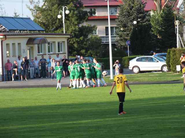 W mecz dobrze weszli goście, którzy już w piątej minucie mogli otworzyć wynik tego pojedynku, ale Błażej Nowak oddał niecelny strzał spoza pola karnego. Chwilę później Karol Gregorek groźnie dośrodkował w pole bramkowe „biało – zielonych”, ale tam na posterunku stał Robert Jędras, który wybił futbolówkę na aut.