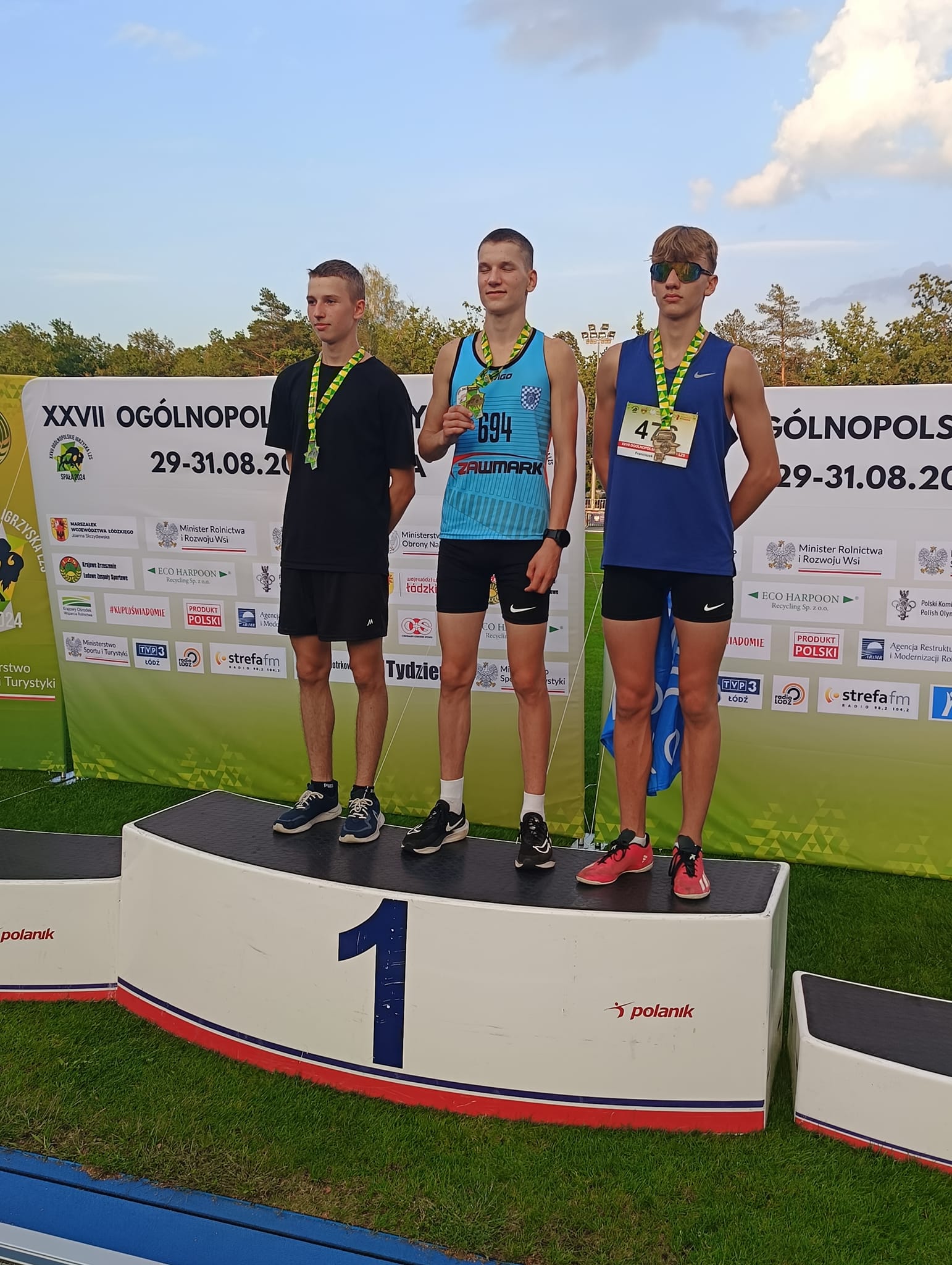 Franciszek Grzymski wywalczył złoto w biegu na 1000 m przeszkody w kategorii U16, a junior młodszy Mateusz Nijakowski zdobył kolejny złoty medal w biegu na 2000 m przeszkody, skutecznie broniąc się przed rywalem z klubu Czapla Białe Błota.