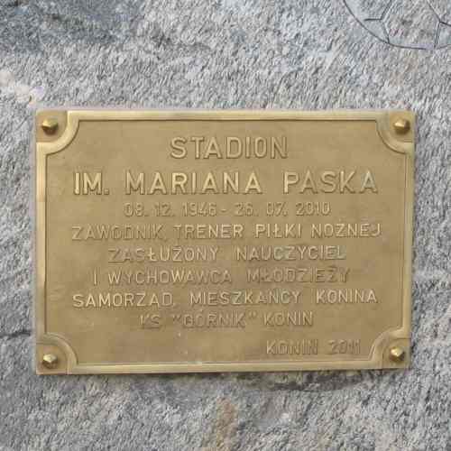 Obelisk poświęcony trenerowi Marianowi Paskowi odsłonięto dziś na stadionie przy ulicy Dmowskiego w Koninie. Marian Pasek był piłkarskim szkoleniowcem, który wychował kilka pokoleń zawodników. Podczas swej przygody z piłką nożną pracował w Mieszku Gniezno, Lechu Poznań, Sokole Kleczew i w Zjednoczonych Rychwał. Największe sukcesy święcił jednak z Górnikiem Konin.