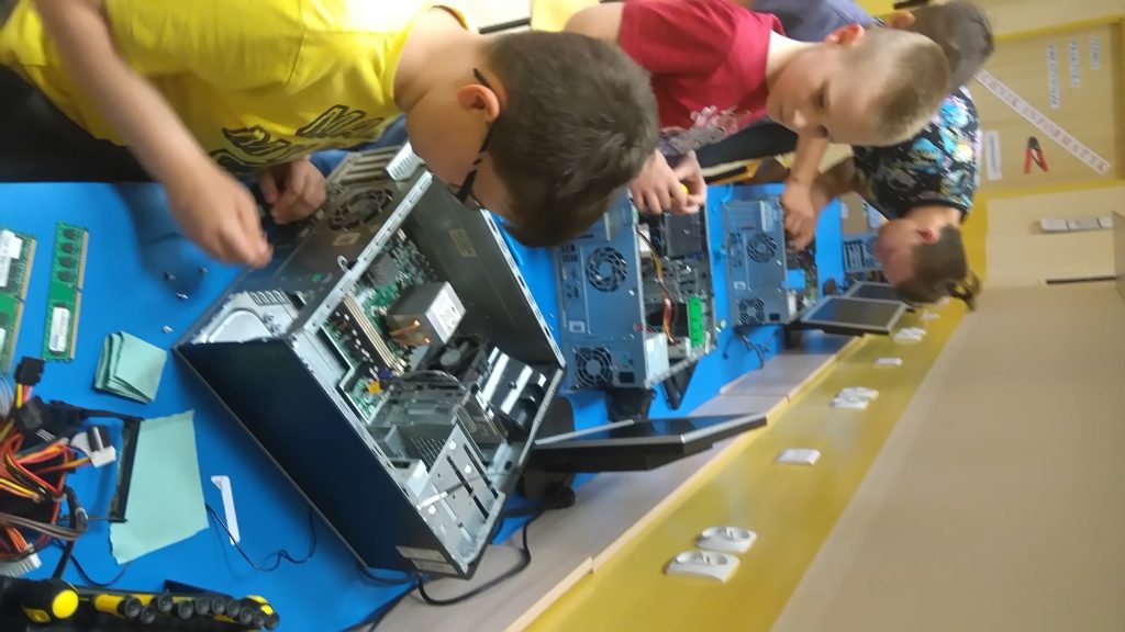Na spotkaniu pod kierunkiem nauczyciela, Pana Tomasza Jakubowskiego Eryk przedstawił budowę komputera, zasady BHP i ergonomii podczas montażu komputera osobistego. Po wyczerpujących wyjaśnieniach uczestnicy zajęć przystąpili do czynności praktycznych nad którymi cały czas czuwał Eryk. Korzystając z narzędzi oraz specjalnie przygotowanych stanowisk wyposażonych w elementy ochrony antyelektrycznej oraz przeciwspięciowej i przeciwpożarowej złożyli komputer klasy PC z części od podstaw.